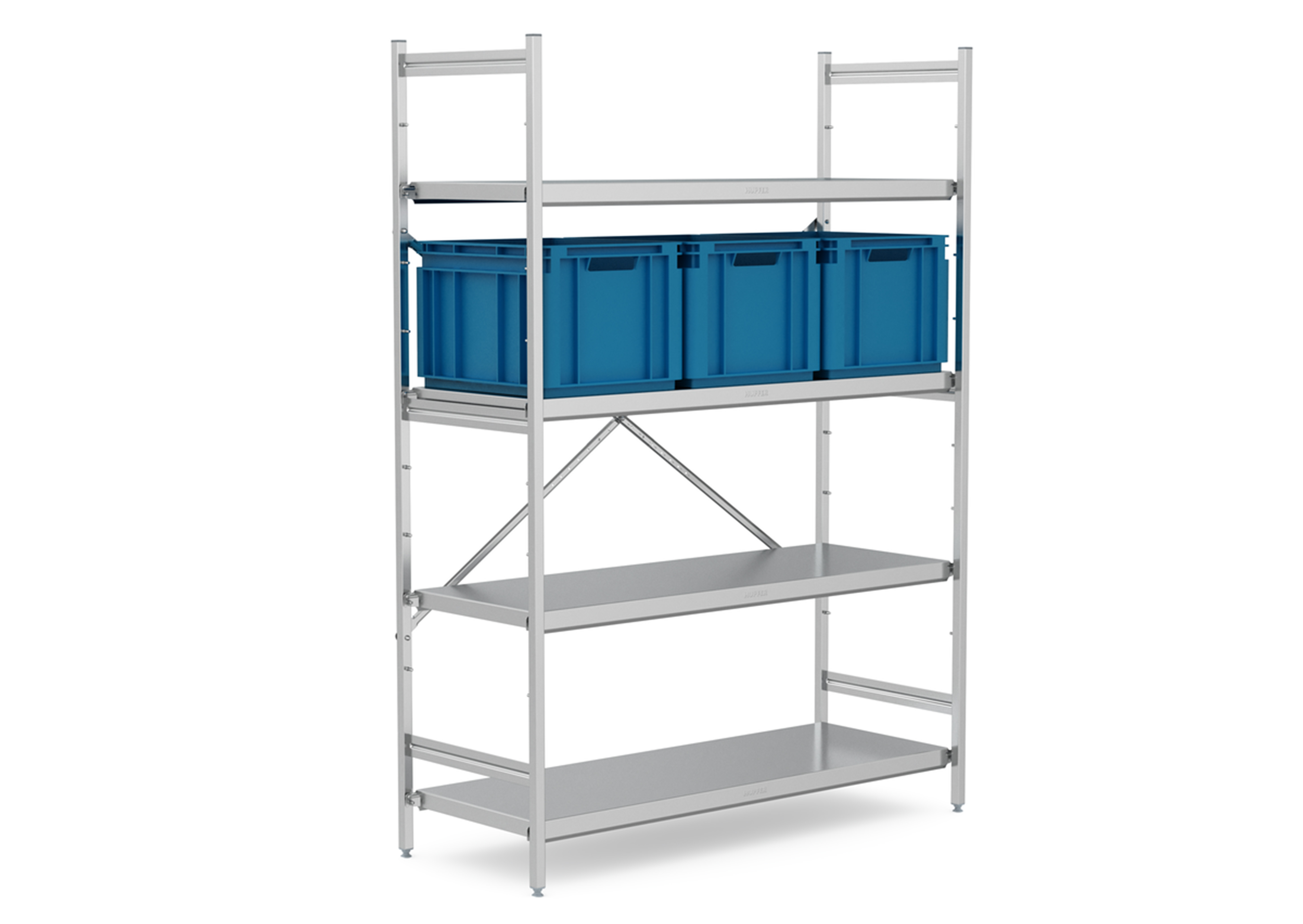 - Optimised for Euro containers: The shelves are adapted to the Euro container format of 600 x 400 mm