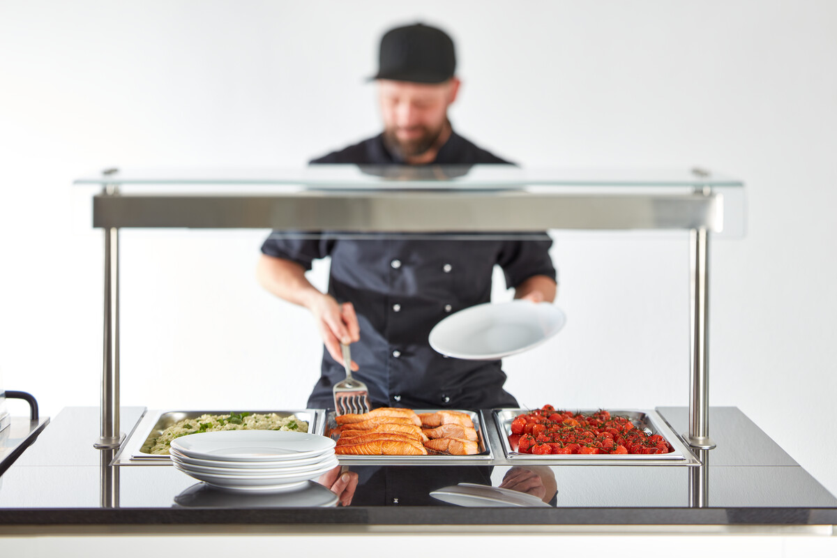 Try Dry! With its attractive presentation, ergonomic handling, and efficient operation, Therma Dry revolutionizes food presentation in the serving area with these three core advantages. Therma Dry harnesses the heat energy of infrared waves - without the need for water supply or preheating, maintaining a constant temperature level. This transforms the process of replenishing the hot food display from a daily challenge into a straightforward task without risks and with significantly less effort.