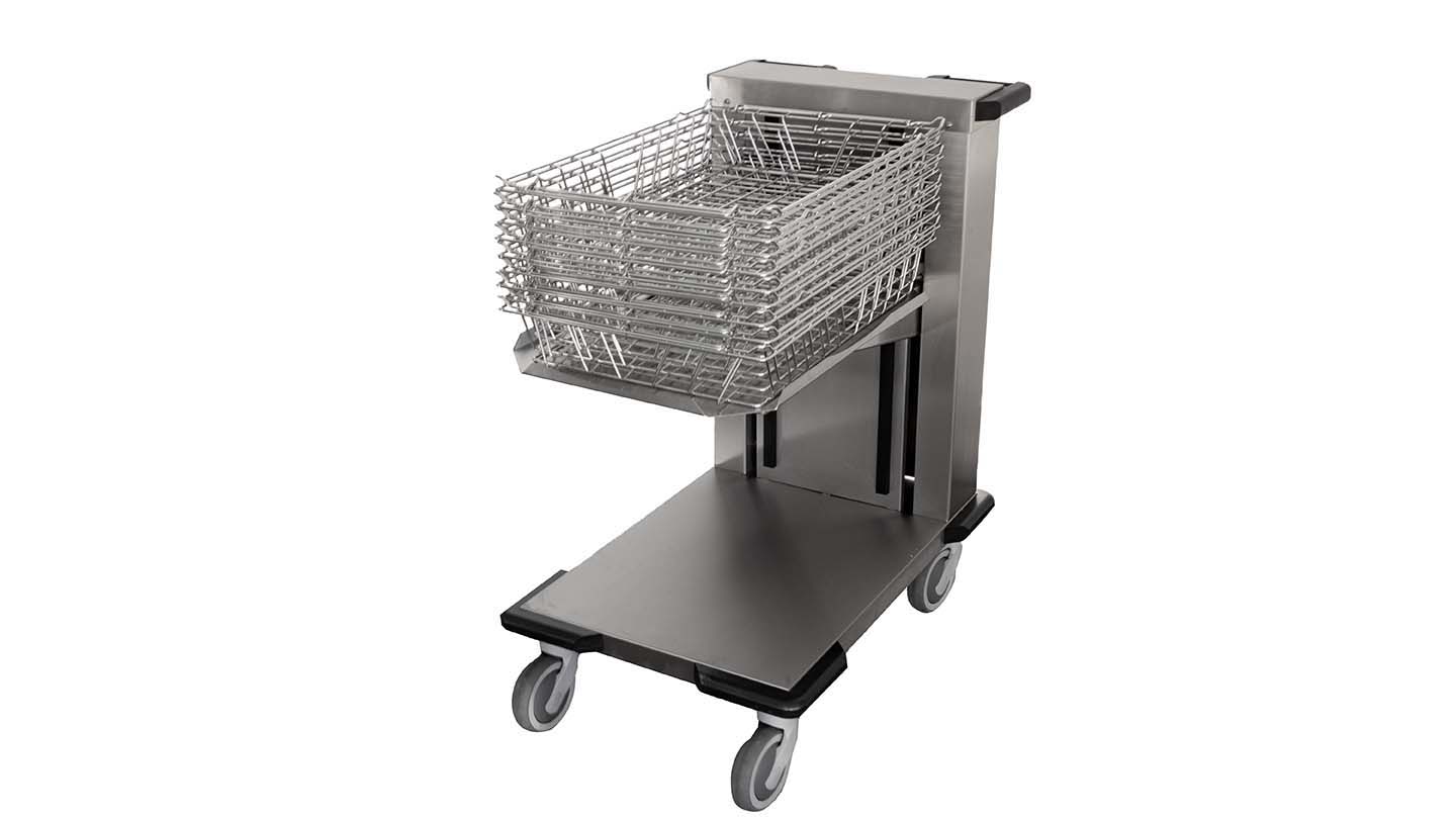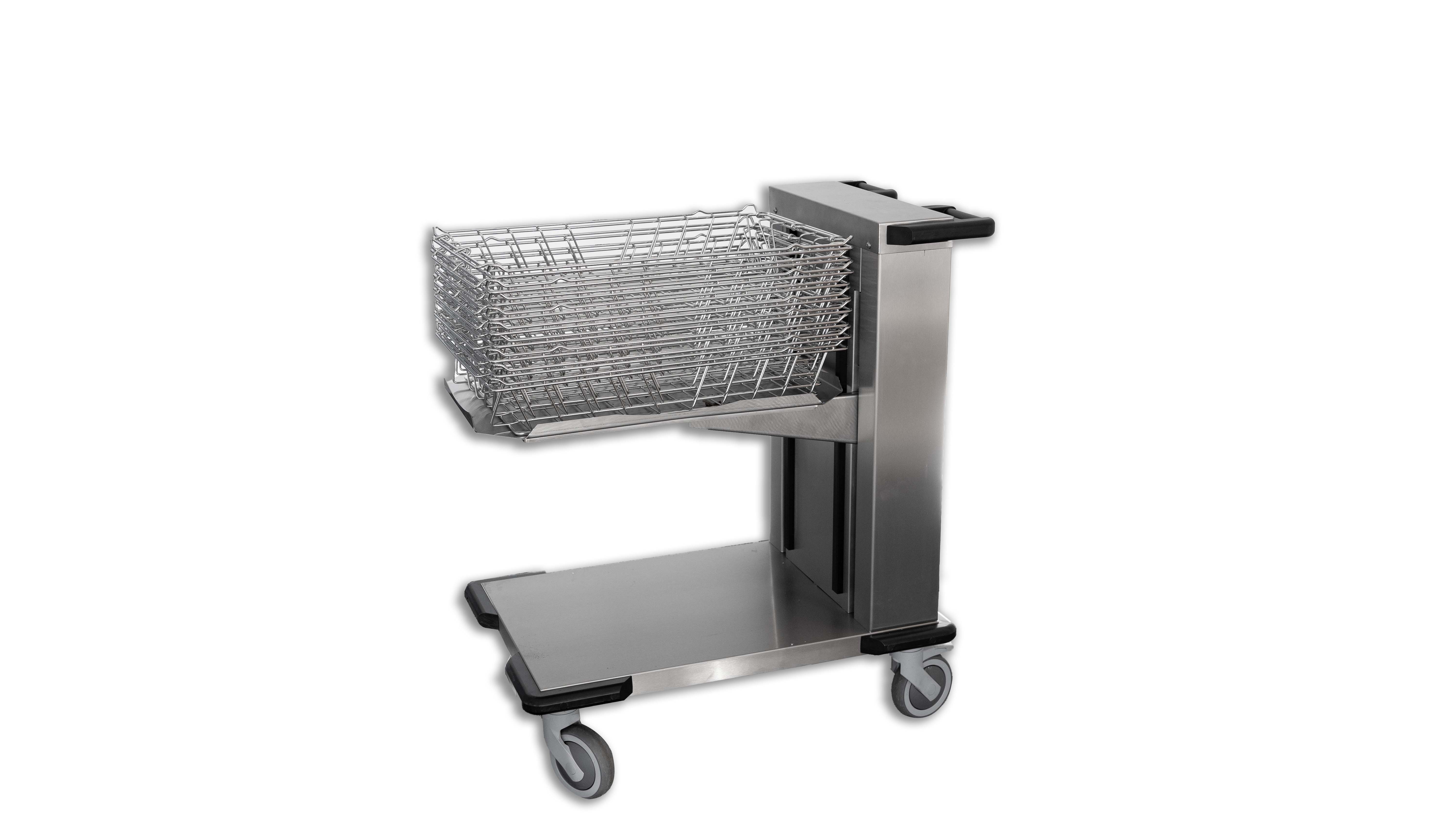 SAFE, SECURE, STACKING IN MINIMAL SPACE. Hupfer's latest basket dispenser for ISO/SPRI sterile goods baskets